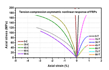 - The proposed FE model well-simulated the asymmetric nonlinear behavior of different types of composites.