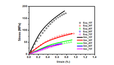- The plastic model was implemented with combination with asymmetric mechanical properties (modulus, strength) and failure criterion.